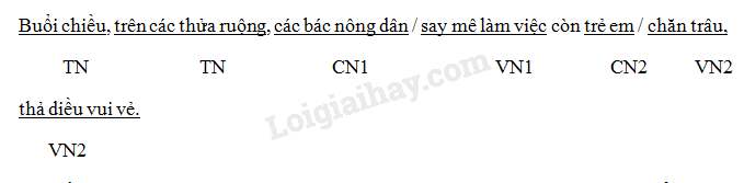 Hai vế câu “các bác nông dân say mê làm việc” và “trẻ em chăn trâu, thả diều vui vẻ” được nối với nhau bởi quan hệ từ còn