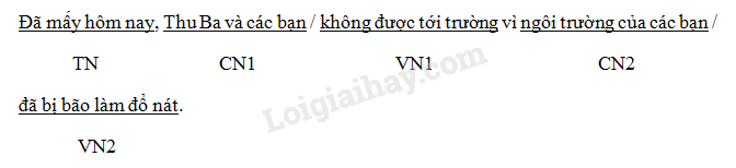 Vế câu “Thu Ba và các bạn không được tới trường” được nối với vế câu “ngôi trường của các bạn đã bị bão làm đổ nát”được nối với nhau bởi quan hệ từ vì.