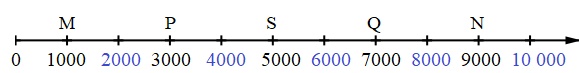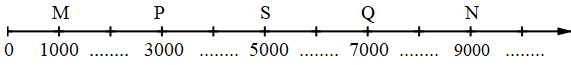 a) Trung điểm của đoạn thẳng MN là điểm S ứng với vạch số 5000.