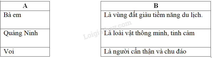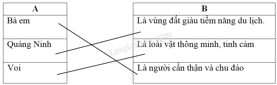 Nối từ ngữ ở cột A với từ ngữ thích hợp ở cột B  để được kiểu câu Ai là gì?