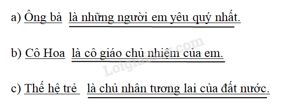 Gạch 1 gạch dưới bộ phận câu trả lời cho câu hỏi Ai? Gạch 2 gạch dưới bộ phận câu trả lời cho câu hỏi Là gì? hoặc Là ai? trong mỗi câu sau: