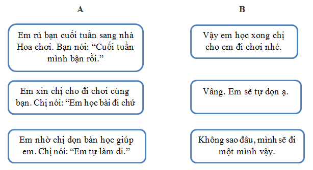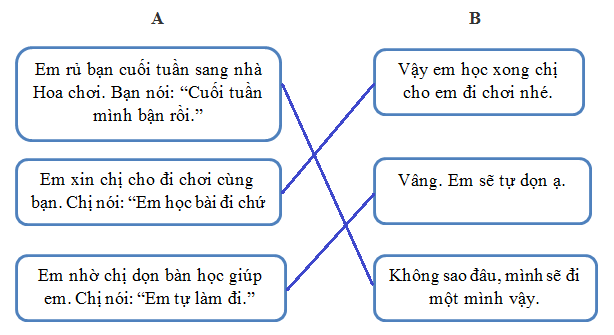 Nối mỗi tình huống ở cột A với lời đáp ở cột B cho phù hợp