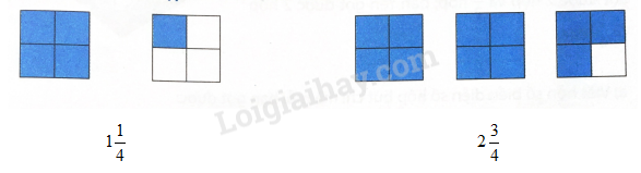 Viết hỗn số thích hợp vào chỗ chấm dưới mỗi nhóm hình.