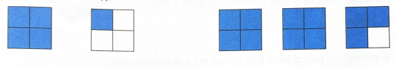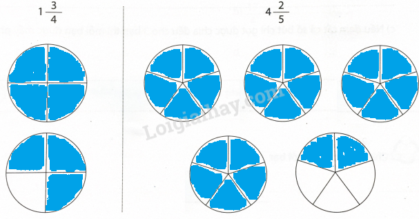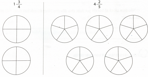 Em quan sát hình vẽ, các hình được tô màu toàn bộ chỉ phần nguyên của hỗn số; Hình được tô màu một phần chỉ phần phân số của hỗn số.