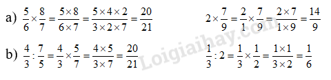– Muốn nhân hai phân số ta lấy tử số nhân với tử số, mẫu số nhân với mẫu số.