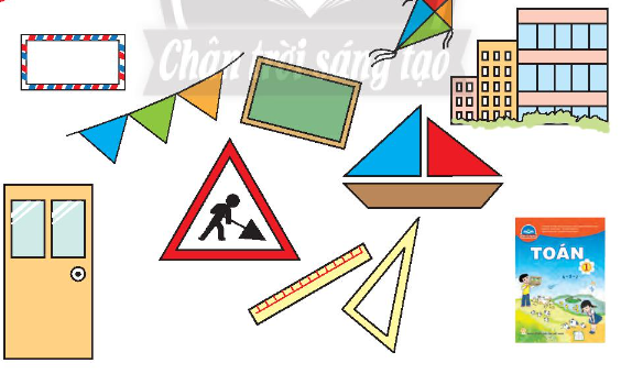 Các hình vẽ có dạng hình chữ nhật là: Phong thư, cánh cửa, cái thước kẻ, cái bảng học sinh, quyển sách, tòa nhà