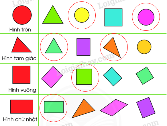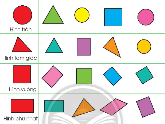 2. Hình tròn, hình tam giác, hình vuông, hình chữ nhật