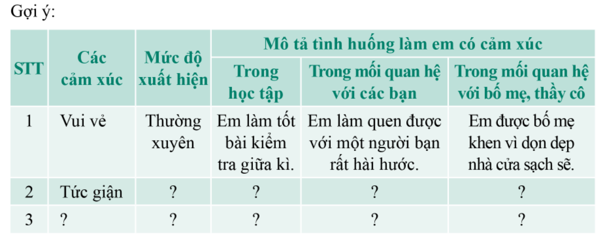 Mô tả các tình huống làm nảy sinh các cảm xúc của bản thân mà em nhận biết được.
