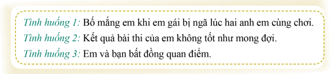 – Đối với mỗi tình huống em có cách ứng xử và kiểm soát cảm xúc tiêu cực như thế nào?