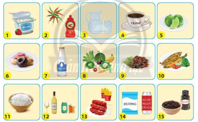 Đồ ăn có hại là 2, 12, 13, 14 nếu ăn quá nhiều sẽ gây hại cho cơ thể và tăng tỷ lệ béo phì.