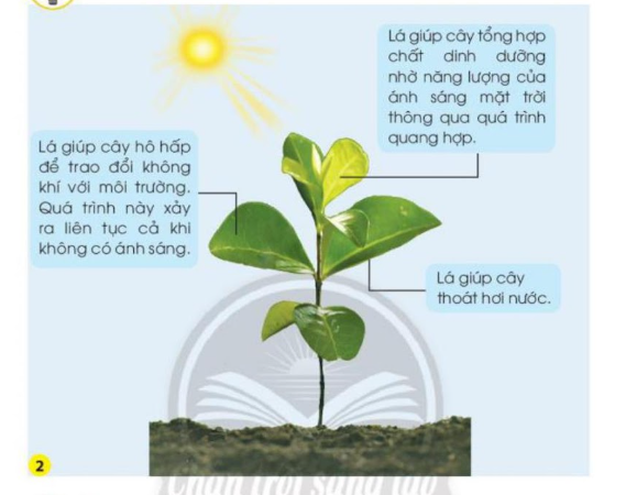 Em quan sát hình, dựa vào gợi ý trong hình nêu chức năng của lá cây.