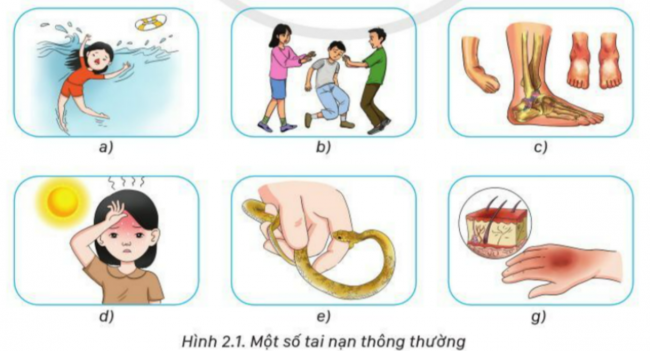 Em hãy nêu tên và cách sơ cứu một số tai nạn thông thường ở hình 12.1