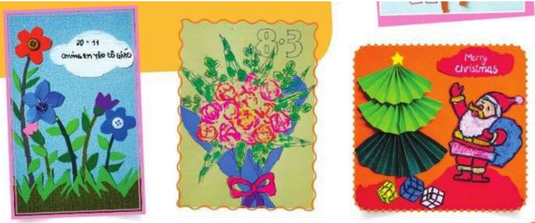 Thiệp chúc mừng đã được sử dụng hình thức trang trí nào em đã học?