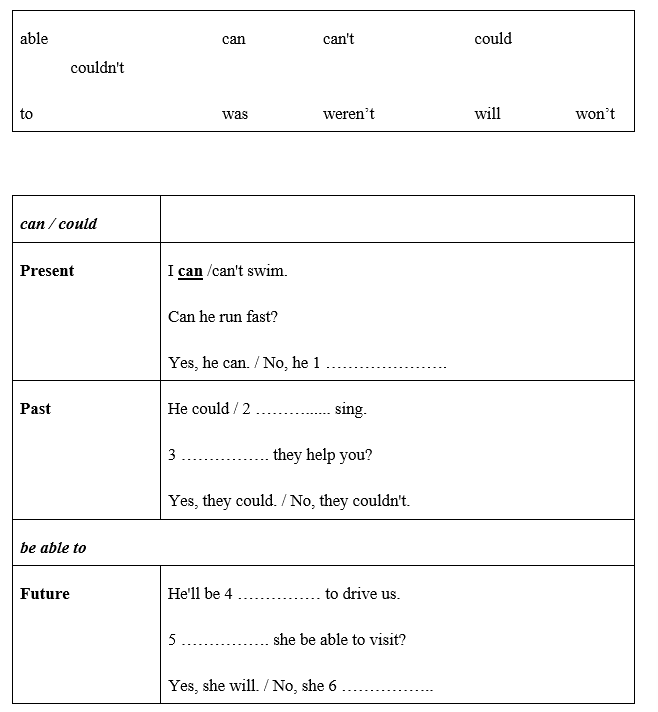 2. Language focus: can, could, be able to