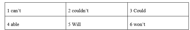 7 a won’t be able                                 b couldn’t                                c can’t