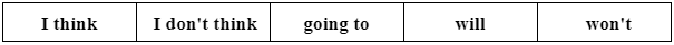 c. Fill in the blanks with a verb from the box and the correct form of be going to or will. (Điền vào chỗ trống với một động từ và dạng đúng của be going to hoặc will.)