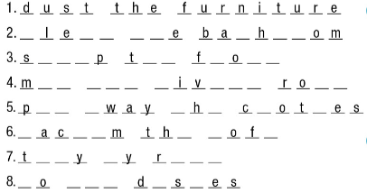 (Nghe và đánh số các công việc nhà theo thứ tự bạn nghe thấy.)
