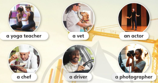 Look and listen. Repeat. Listen and point. Say. Look. Listen and check. Interview. Write.