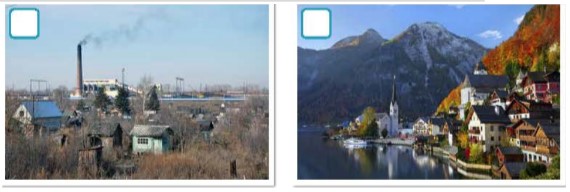 a. Listen to Mr. Jones talking about how his town has changed in the last thirty years. Tick (✔) the picture which best shows the town in the past.