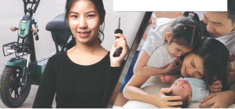 (Nhìn ảnh là thấy họ vui rồi. Trong bức ảnh đầu tiên, cô gái có một chiếc xe đạp điện mới. Và trong bức ảnh thứ hai, họ có một đứa con.)