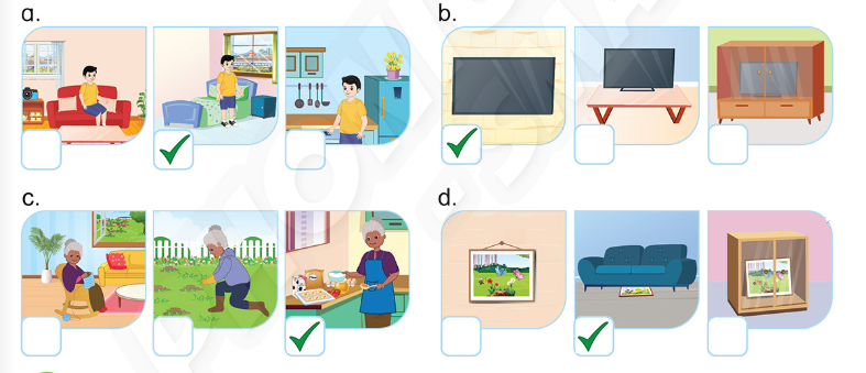 d. There is a picture in the room. (Có một bức tranh ở trong phòng.)
