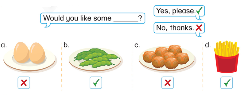– Would you like some beans? (Bạn có muốn một ít đậu không?)