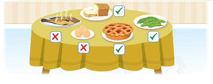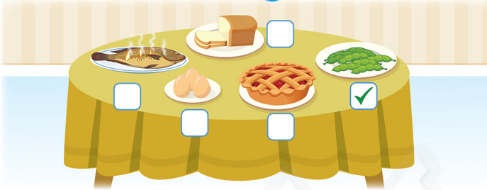 Cách chơi: Làm một vòng quay với các ô trong vòng quay là hình về đồ ăn. Các bạn sẽ lần lượt quay, khi kim quay chỉ vào ô nào, một bạn hỏi và một bạn trả lời.