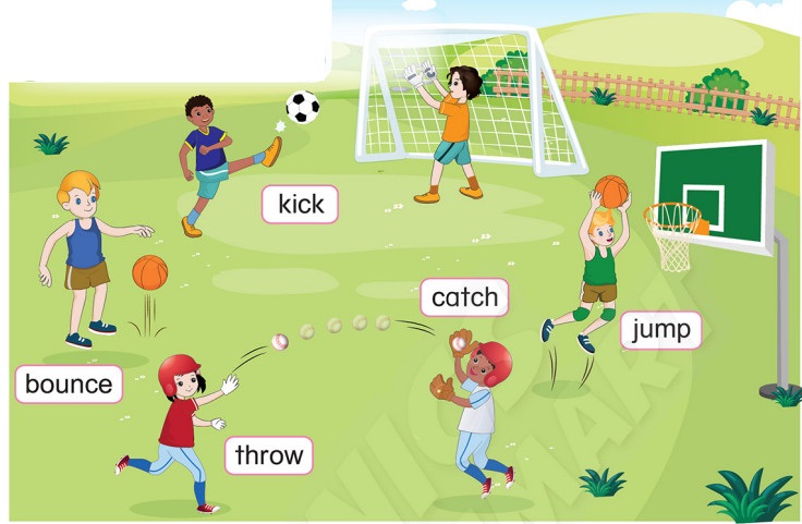 He is throwing the ball. (Cậu ấy đang ném bóng.)