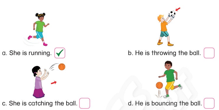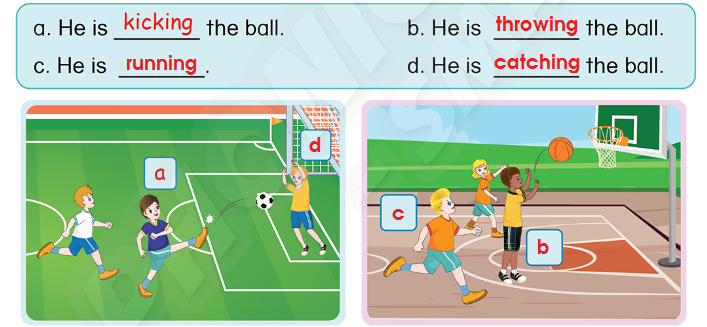 d. Look at Tommy! He is catching the ball. (Nhìm Tommy kìa! Cậu ấy đang bắt bóng.)