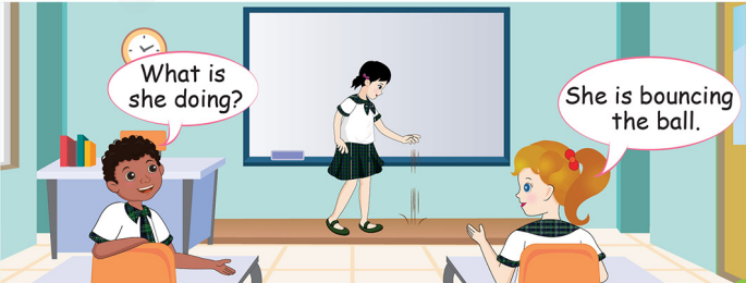 Một bạn thực hiện một hành động, một bạn sẽ hỏi và một bạn trả lời về hành động mà bạn mình đang diễn tả.
