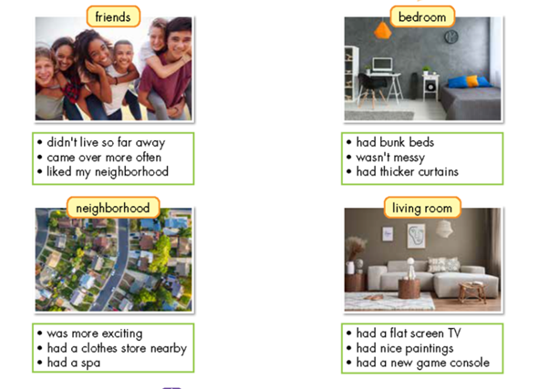 8. My neighborhood is great. There’s a huge park, and there are lots of nice houses in the area.