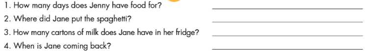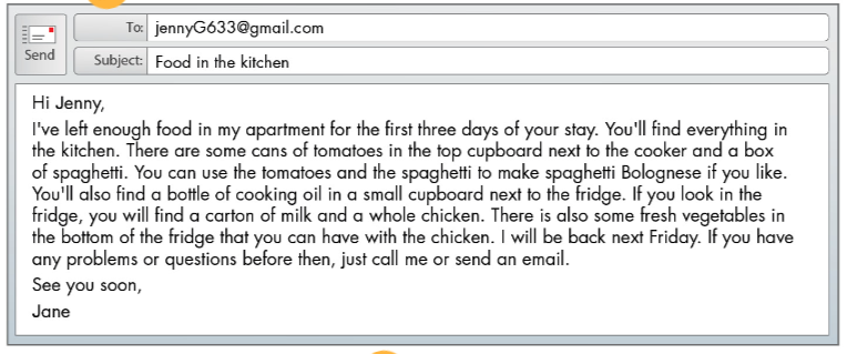 Giải thích: Người viết thư là Jane. Và cô ấy đã dặn dò và nói cho Jenny biết đồ ăn ở đâu.