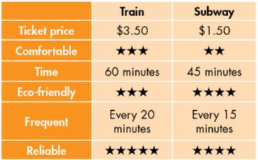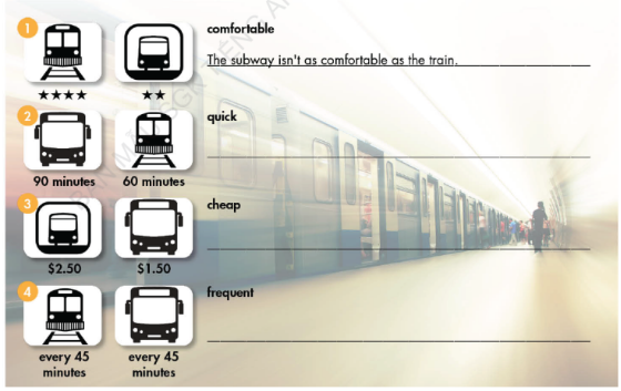 ✓ 1. A subway ticket isn’t as expensive as a train ticket.