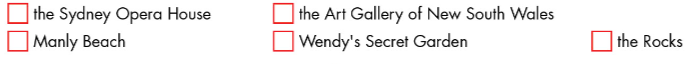 a. Listen to Emily talking about her trip to Sydney. Tick() the places she visited.