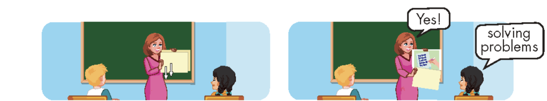 (Nó là lớp mỹ thuật. Tôi thích bởi vì tôi thích tô màu. Nhưng hôm nay chúng tôi đang làm một vài thứ khác.)