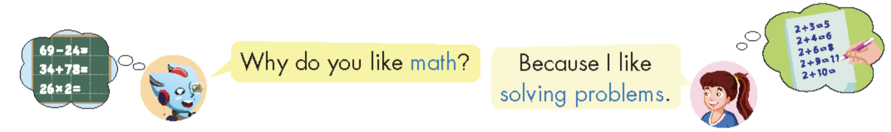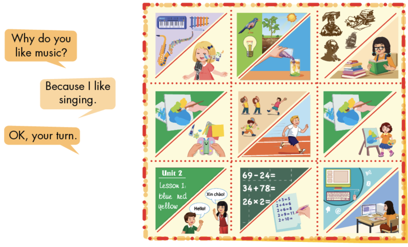 Cách chơi: Lần lượt hỏi và trả lời lý do tại sao ai đó lại thích môn học nào đó, sử dụng cấu trúc: