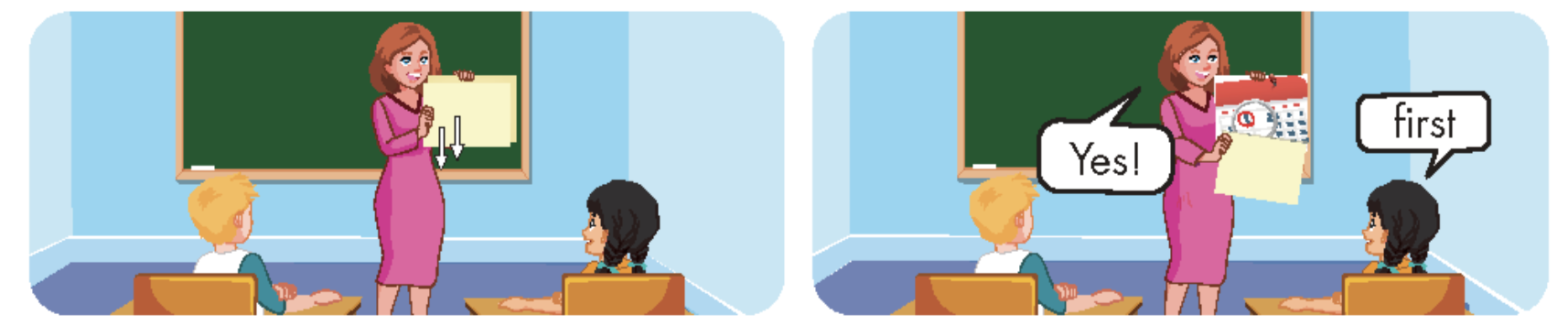 (Ừm. Những ngày đặc biệt khác thì sao? Lucy, bạn yêu lễ hội mùa xuân ở trường, phải không? Nó diễn ra khi nào vậy?)