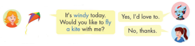 (Hôm nay trời có gió. Bạn có muốn thả diều với tớ không?