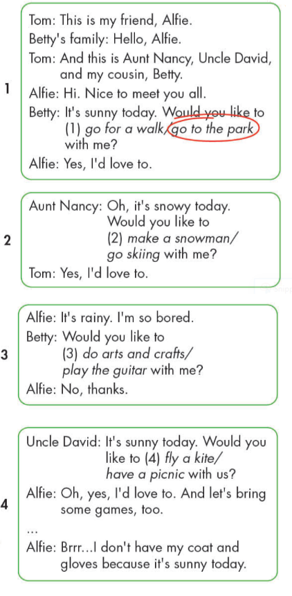 4. Uncle David: It’s sunny today. Would you like to have a picnic with us?