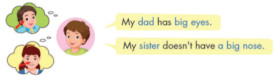 My dad has big eyes. (Bố của tớ có đôi mắt to.)
