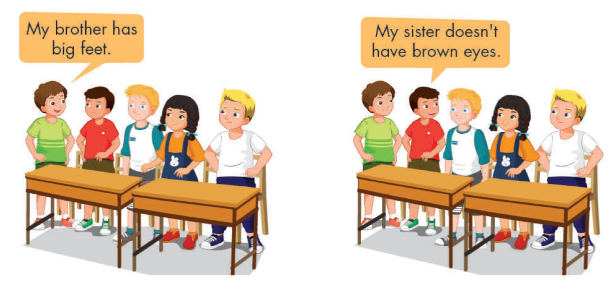 My sister doesn’t have brown eyes. (Chị tớ không có đôi mắt màu nâu.)