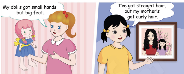 d. She hasn’t got long hair. She’s got curly hair. T