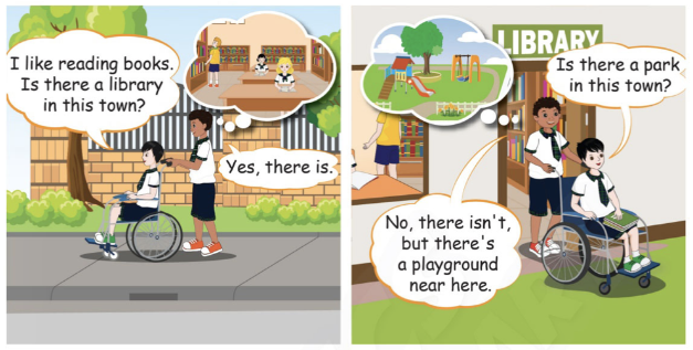 Tớ thích đọc sách. Ở trong khu phố này có thư viện không?