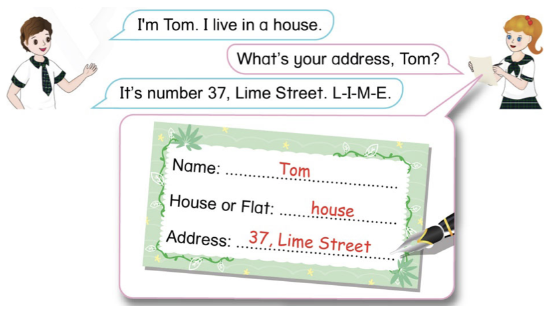 (Mình là Tom. Mình sống trong một ngôi nhà.)