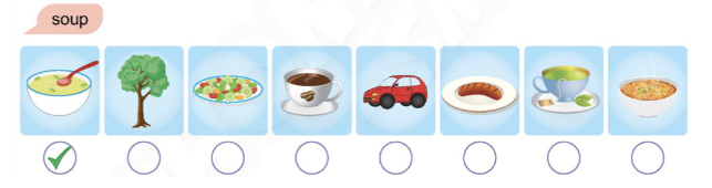 2. Tick the pictures of foods and drinks. Say.
