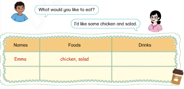 What would you like to eat? (Bạn muốn ăn gì?)