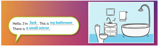 (Xin chào. Tôi là Jack. Đây là phòng tắm của tôi. Có một chiếc gương nhỏ.)