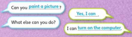 Look and listen. Repeat. Listen and point. Say. Look. Listen and check. Talk to your friend.