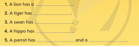 Cách chơi: Một người nhắc tên con vật, người còn lại hoàn thành câu, sử dụng cấu trúc S + has/ have ___.