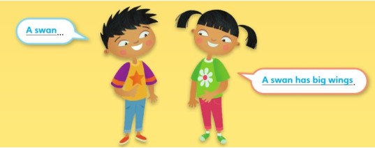 B: A swan has big wings. (Con thiên nga có đôi cánh to.)